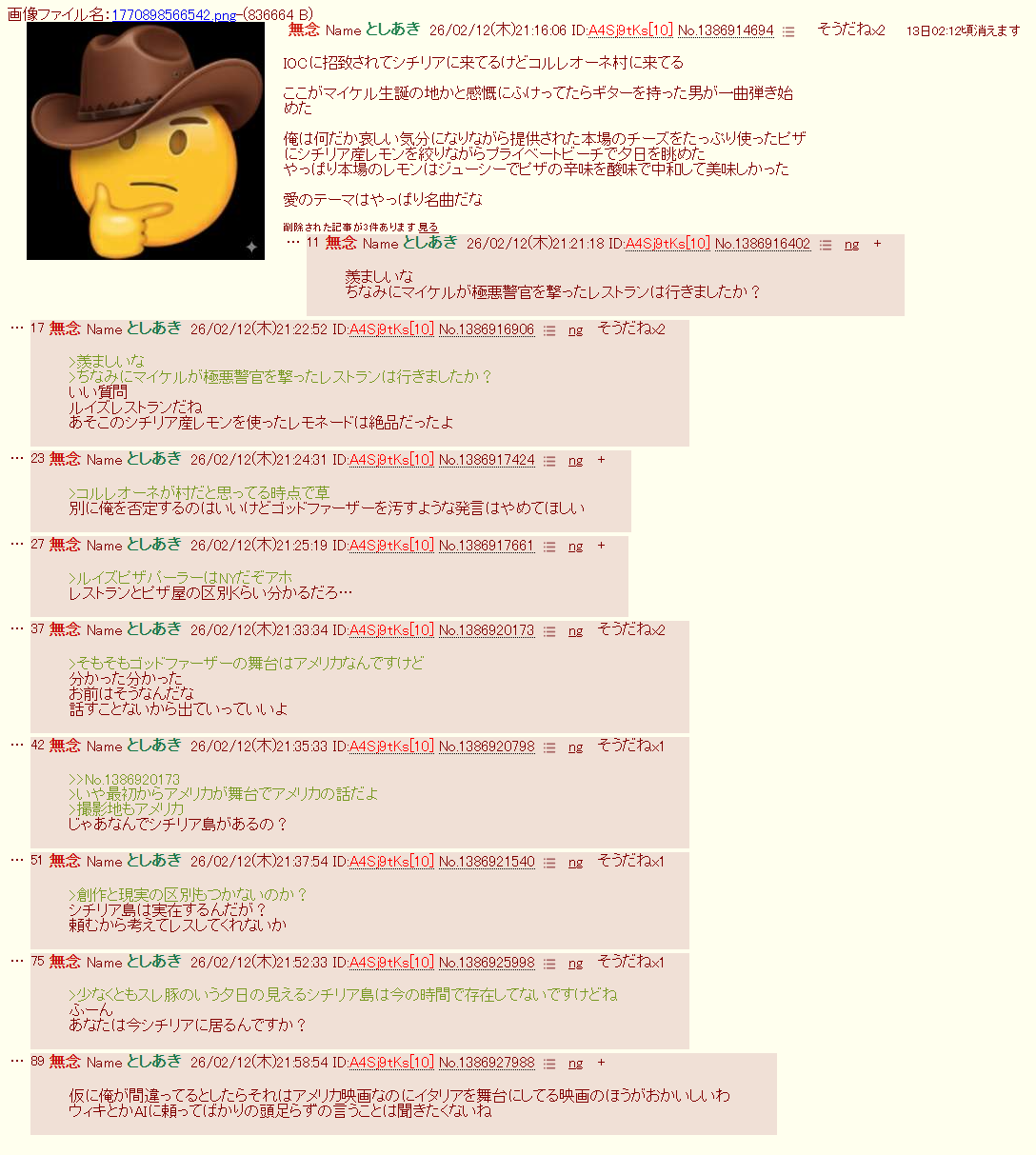 | … | 93無念Nameとしあき26/02/24(火)18:14:42No.1389745813+>ゴッドファーザーもエアプ |