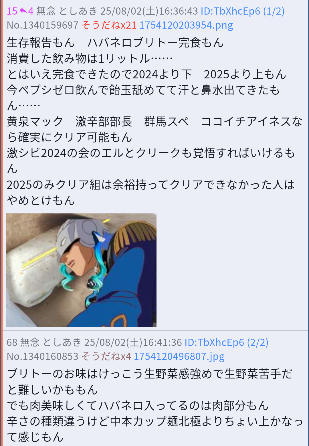 | … | 13無念Nameとしあき26/02/24(火)23:25:29 ID:uUZX95doNo.1389826813そうだねx1 1771943129226.jpg-(497278 B) ブリトー私も口に入れましたけど食べきれませんでした |