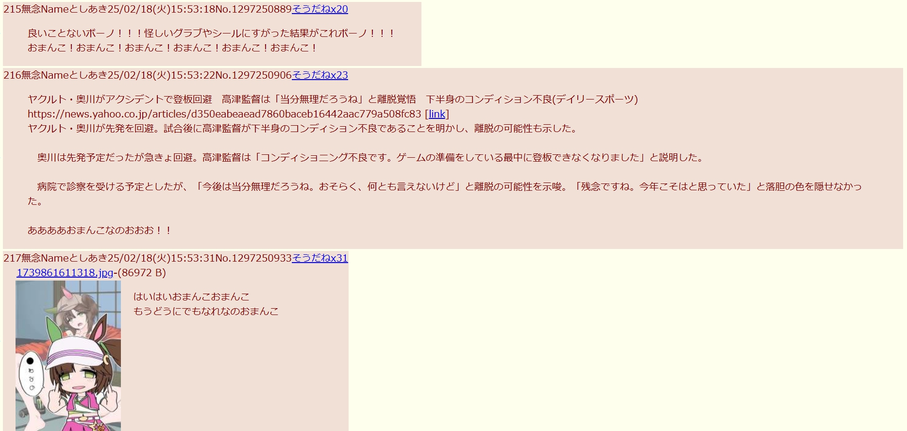 | … | 9無念Nameとしあき26/02/24(火)23:20:40 ID:uUZX95doNo.1389825667+ 1771942840558.png-(4008738 B) >深夜のIDが固定されつつありますね |