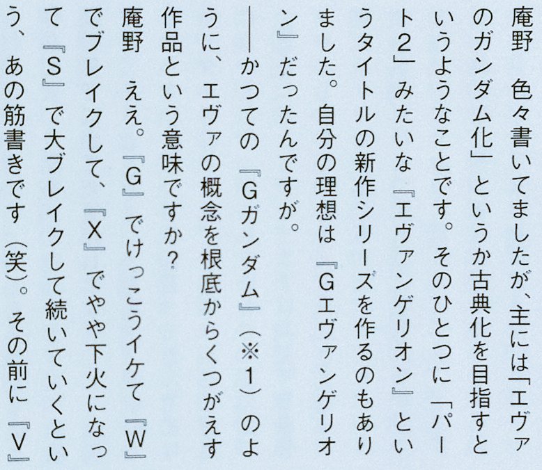 | … | 206無念Nameとしあき26/02/25(水)12:36:26No.1389910072+>実際庵野はGエヴァを理想と言っている |