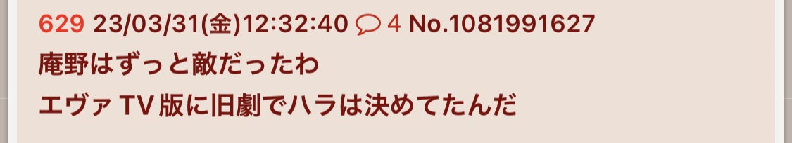 | … | 966無念Nameとしあき26/02/26(木)06:19:59No.1390083350+>庵野のエヴァ |