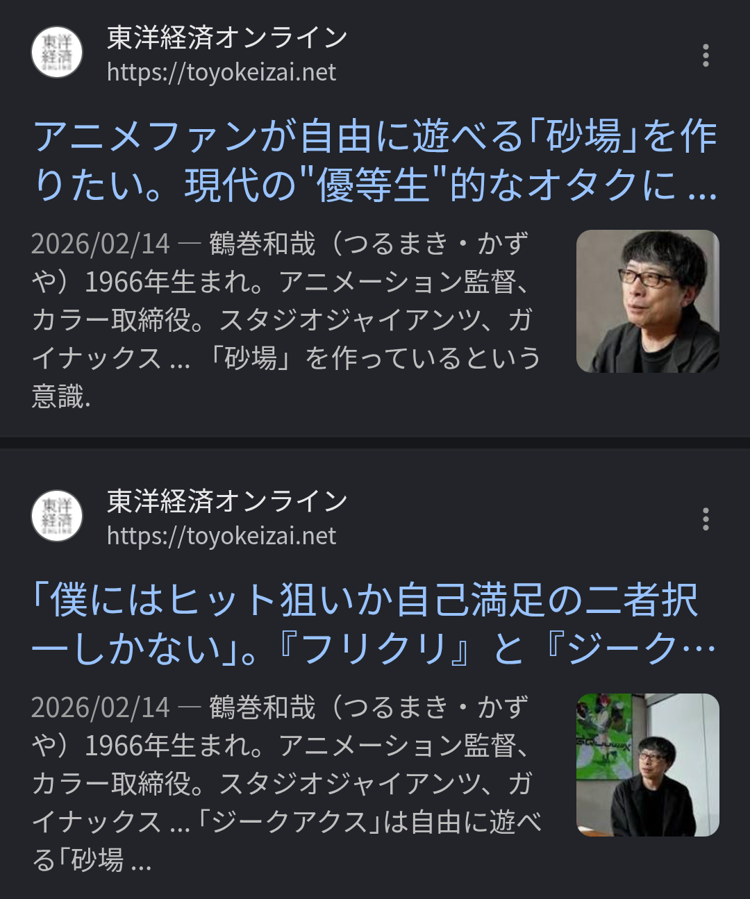 | … | 999無念Nameとしあき26/02/26(木)08:37:36No.1390093846+ガイナ時代から前田と赤井が凄かっただけで庵野は体のいいスポークスマン代わりの神輿って分かってたのに今の連中はそれ知らないからな… |