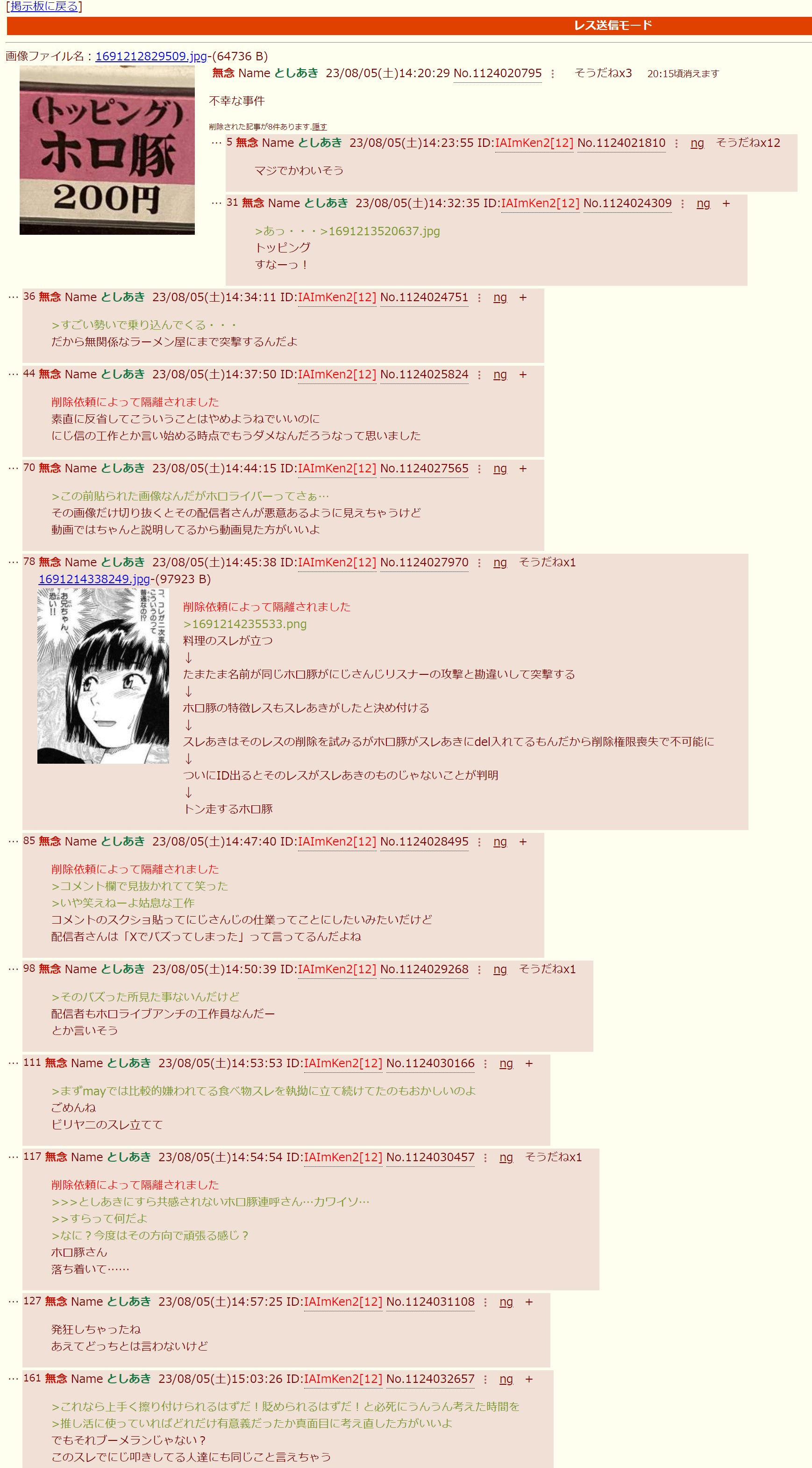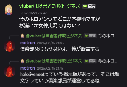 | … | 805無念Nameとしあき26/02/26(木)09:00:14No.1390095856そうだねx6ホロライブに粘着していた男をホロライブみたいなもんって |