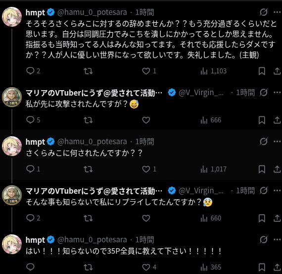 | … | 36無念Nameとしあき26/02/25(水)23:39:53No.1390054464そうだねx16ホロアンチ共が頭悪すぎておなかいたい(笑) |
