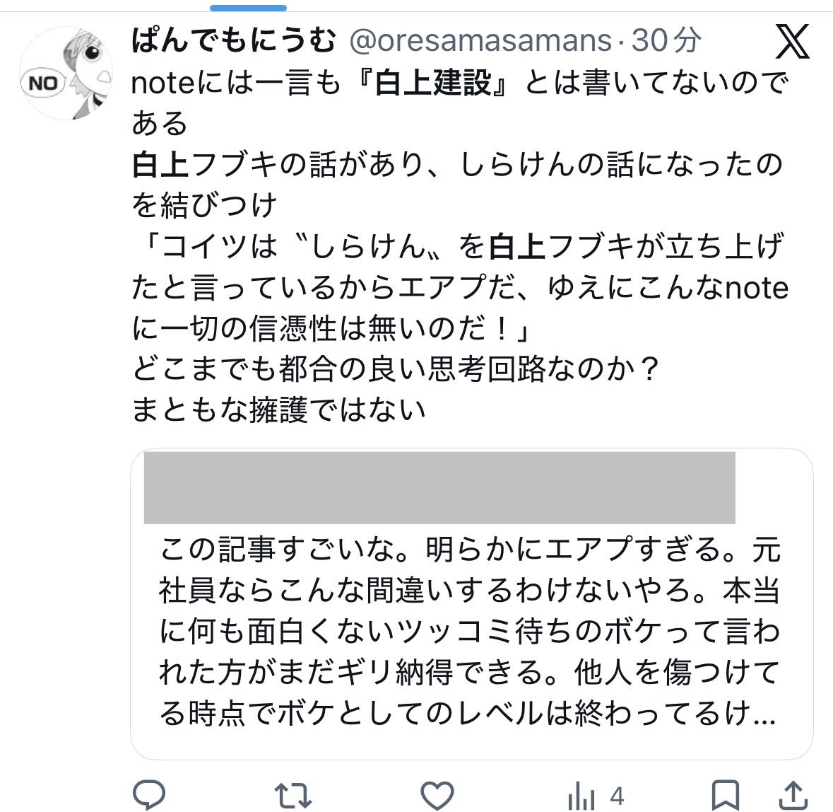 | … | 778無念Nameとしあき26/02/26(木)08:49:21No.1390094879そうだねx2 1772063361150.jpg-(167325 B) 白上建設のnote知らん間に表記直ってたんだな |