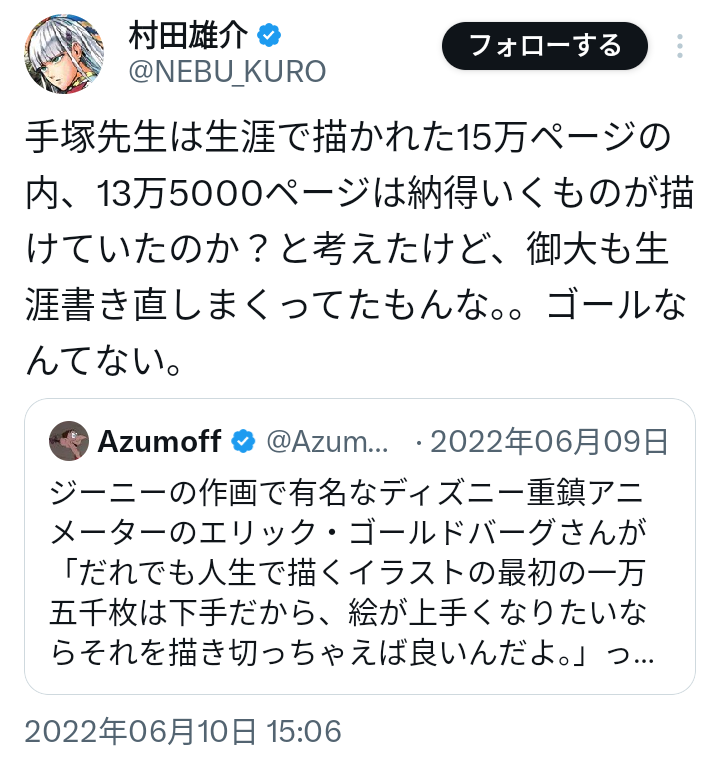 | … | 42無念Nameとしあき26/02/26(木)00:34:14No.1390064468+普通の作家なら編集との打ち合わせで描き直しと同じレベルのものが最初に出てくるのにな |