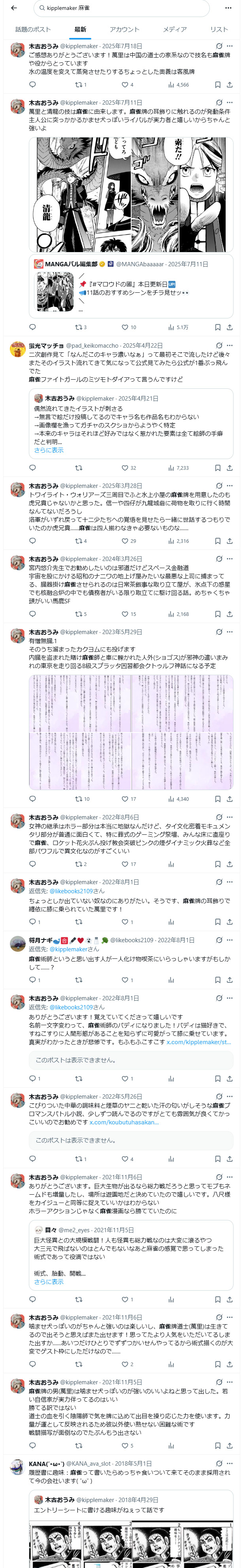 | … | 5無念Nameとしあき26/02/26(木)04:26:20No.1390079847+ 1772047580025.jpg-(730178 B) 先生のツイートを麻雀で検索したらマロウドにアレが昔からのお気に入りだったと知った |