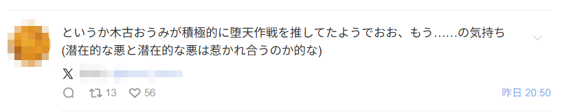 | … | 320無念Nameとしあき26/02/26(木)07:33:45No.1390088069+ 1772058825888.png-(270147 B) >堕天作戦絶賛してたんだってね |