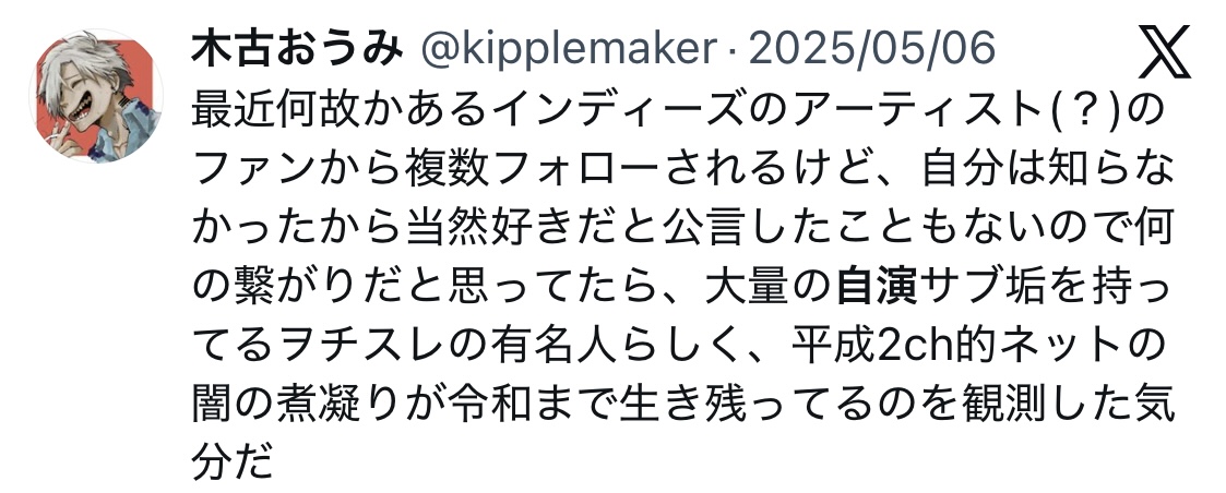| … | 372無念Nameとしあき26/02/26(木)08:17:51No.1390092030そうだねx2猛虎弁や壺のノリがインターネットの作法だと勘違いしてる奴ってちょいちょい見るんだよな |