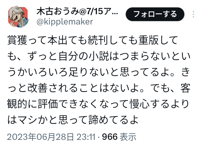 | … | 398無念Nameとしあき26/02/26(木)08:52:20No.1390095139そうだねx1物書きになれたことで心が満たされてればこんなことにはならなかったのに… |