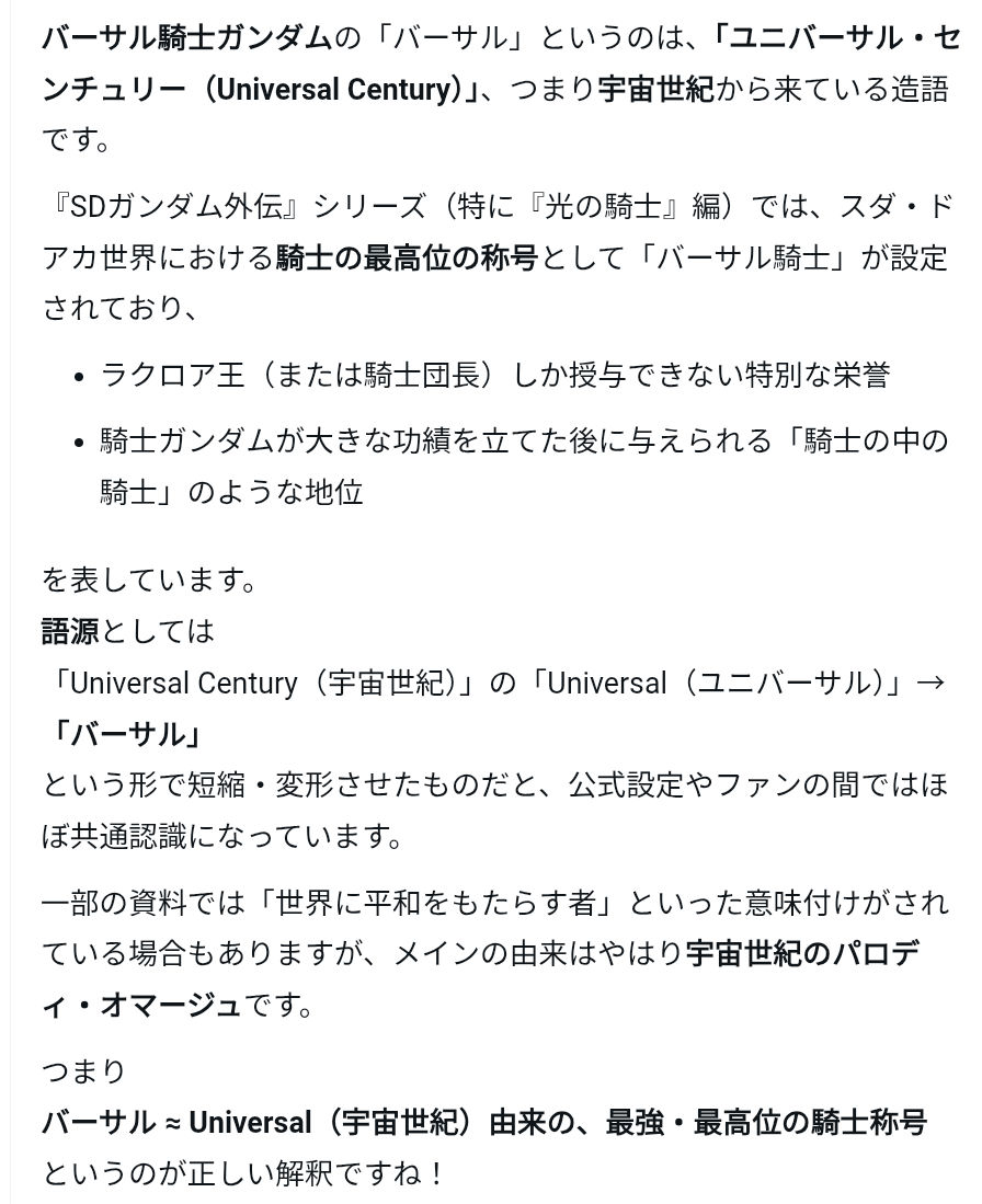 | … | 84無念Nameとしあき26/02/26(木)15:19:50No.1390149605+>バーサルの鎧はスーパーガンダム(Gディフェンサー)意識してるってのと一緒に書いてあった様な |
