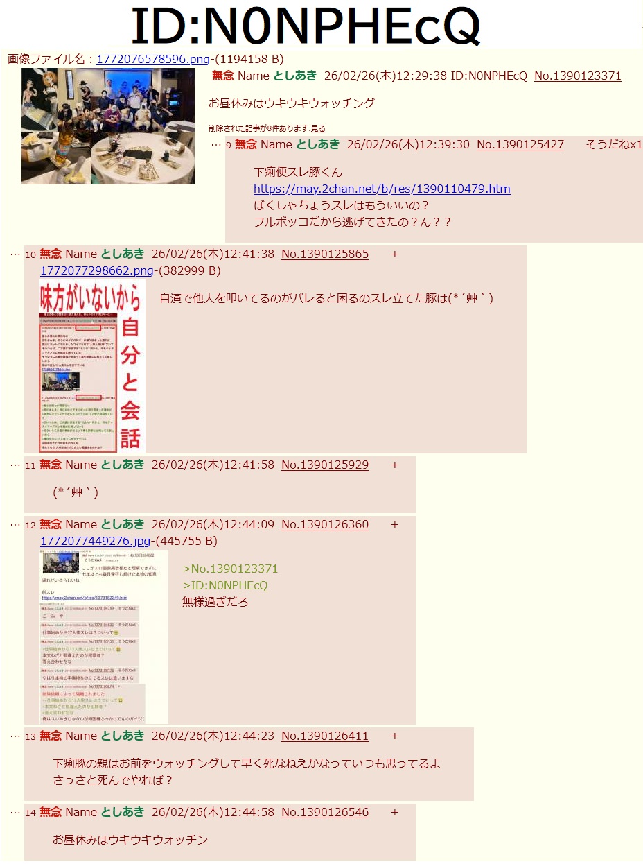 | … | 126無念Nameとしあき26/02/26(木)14:14:46No.1390140243そうだねx1スレバカのIDが出てるのにまったく隔離されないのって不自然だなと思う |