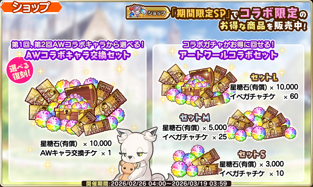 | … | 15無念Nameとしあき26/02/26(木)19:08:09No.1390189523そうだねx2リキコラボ同様配布のジョゼの結晶稼げばシュガーX交換できるので探索2倍期間はいつも以上に要チェックしゅが |