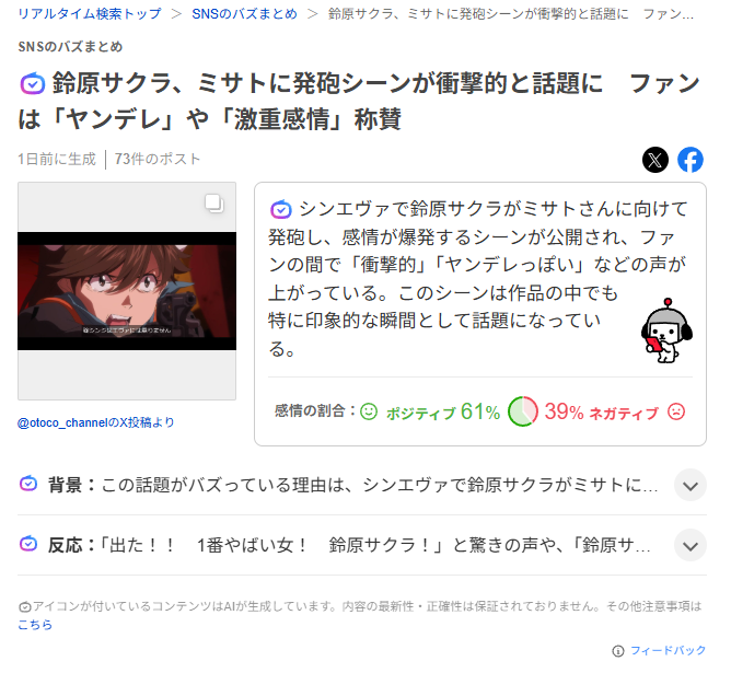 | … | 68無念Nameとしあき26/02/27(金)02:23:08No.1390281575+ 1772126588638.png-(159988 B) 「碇サクラ」を拾っていないところをみるとAI記事だなこれは |