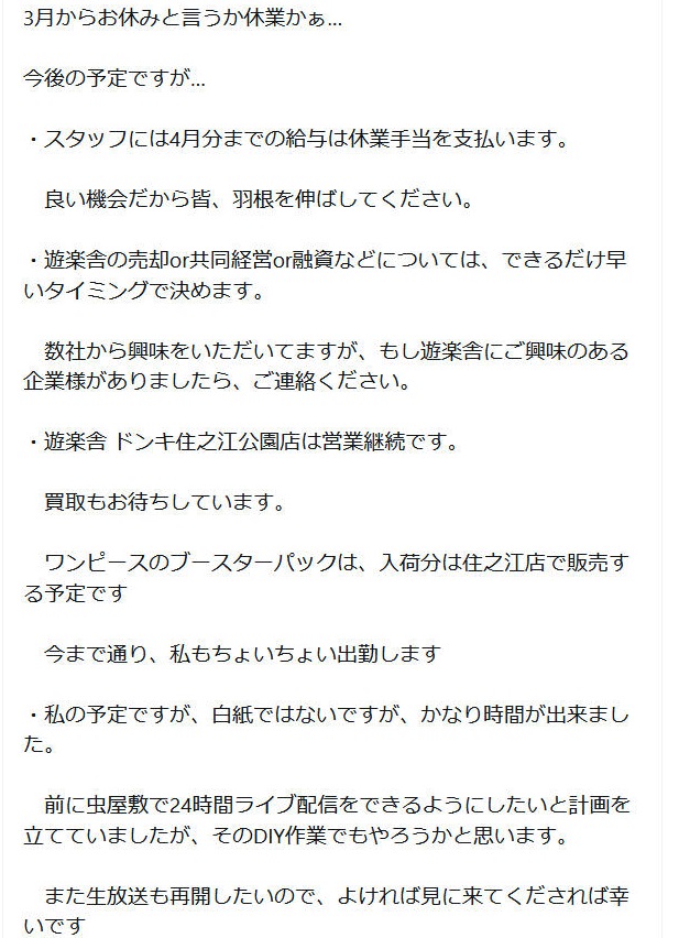 「遊楽舎」ついに28日閉店…店長が胸中を吐露「納得いかない事も多いし、何故あんなことをされたのか」
