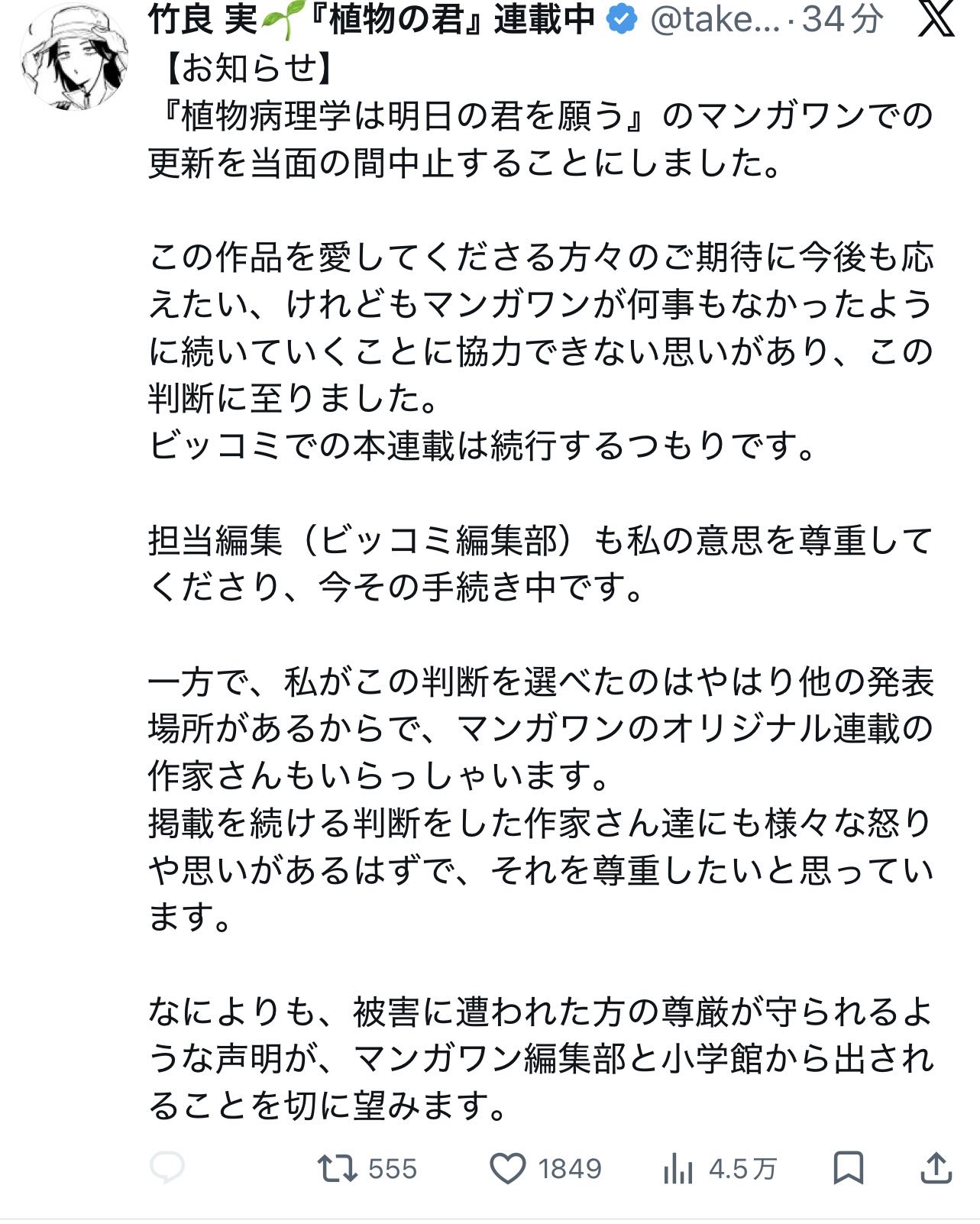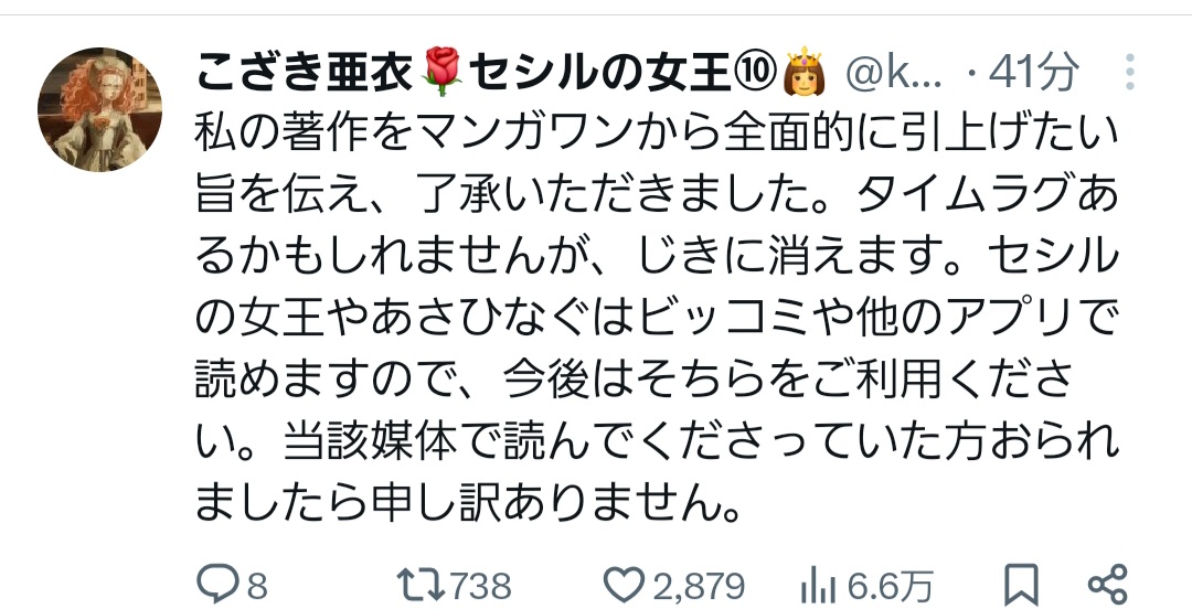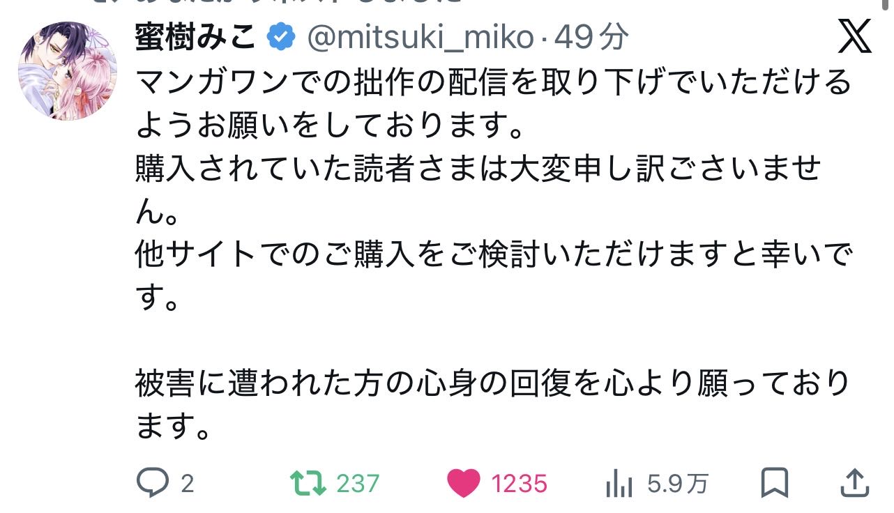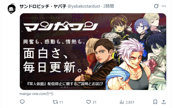マンガワンでの連載や配信を止める作家が急増中削除された記事が4件あります.見る