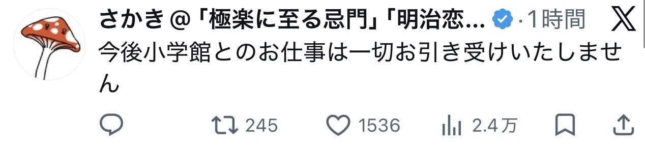 | … | 80無念Nameとしあき26/02/27(金)21:44:47No.1390440044そうだねx3売れっ子に酷い扱いした過去あってクソゴミ守るってなんなんだよ小学館 |
