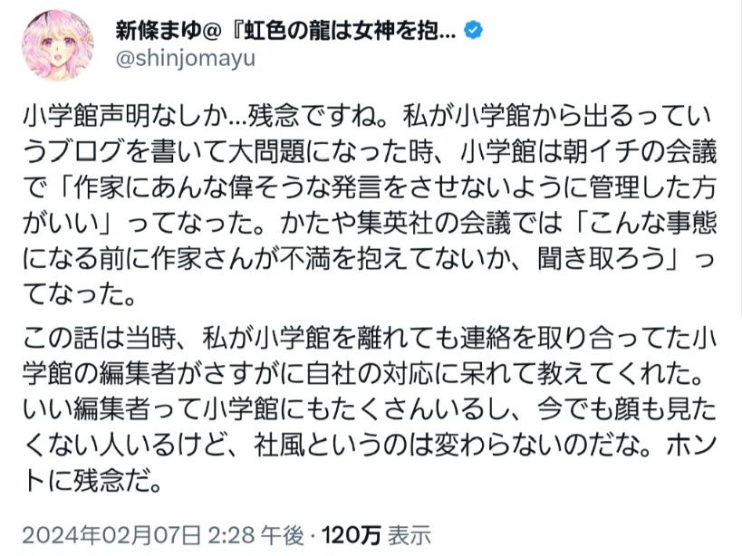 | … | 289無念Nameとしあき26/02/27(金)22:30:25No.1390453452+>そもそもマンガワンってか小学館としての問題じゃないの |