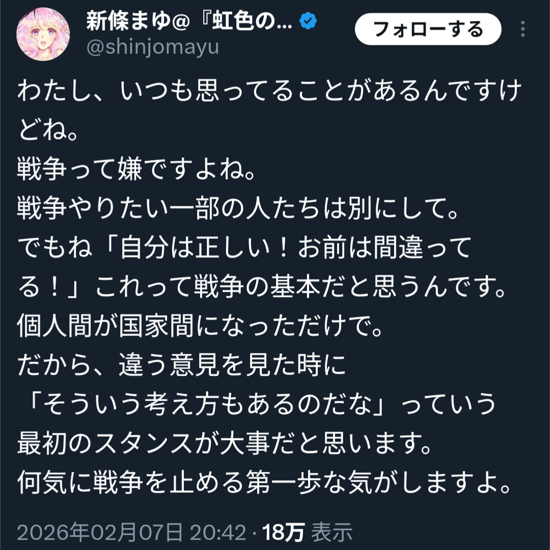 | … | 37無念Nameとしあき26/02/27(金)21:12:39No.1390430275そうだねx3 1772194359142.png-(156765 B) 自分が読んでる漫画の作家はどんな反応してるかなと思ってXちょろっと見たら偏った思想の方だった |
