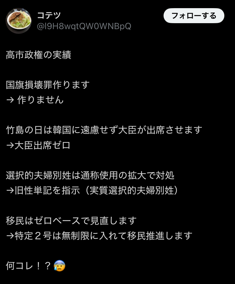 | … | 137無念Nameとしあき26/02/28(土)04:55:02No.1390504293+高市アンチは排外主義者ってコト? |