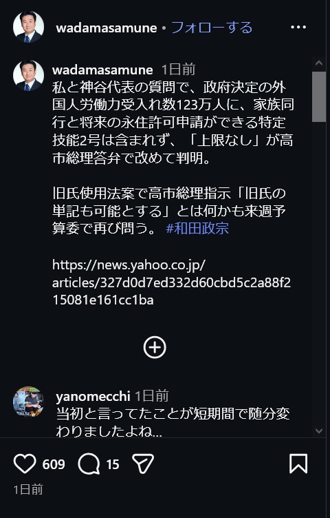 | … | 135無念Nameとしあき26/02/28(土)04:53:55No.1390504246+>移民受け入れは経団連の意向 |