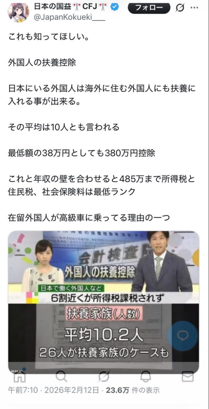 | … | 119無念Nameとしあき26/02/28(土)04:41:07No.1390503822+日本という国なのに日本人を大事にしないで外国人のために税金使ってるの気狂ってるわ |