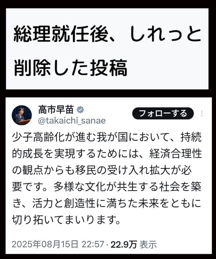 | … | 53無念Nameとしあき26/02/28(土)03:34:36No.1390501294+外国人受け入れを再考するって正直に言ってるし減らすなんて一言も言ってない |