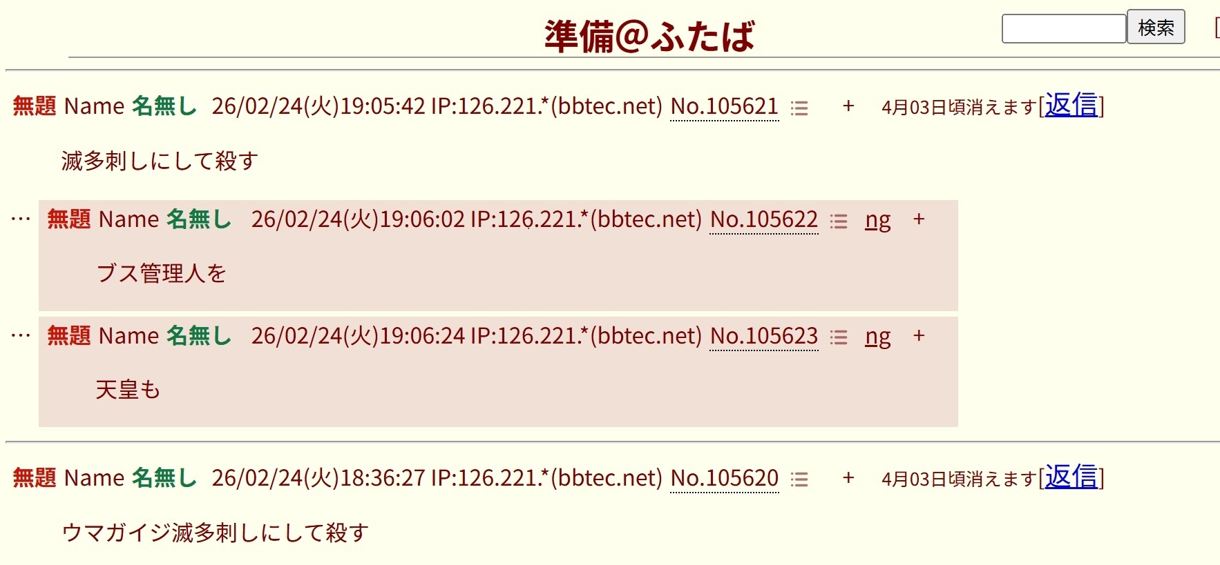 | … | 46無念Nameとしあき26/02/28(土)08:42:37No.1390520214+>>管理人に殺害予告とかして通報されてそう |