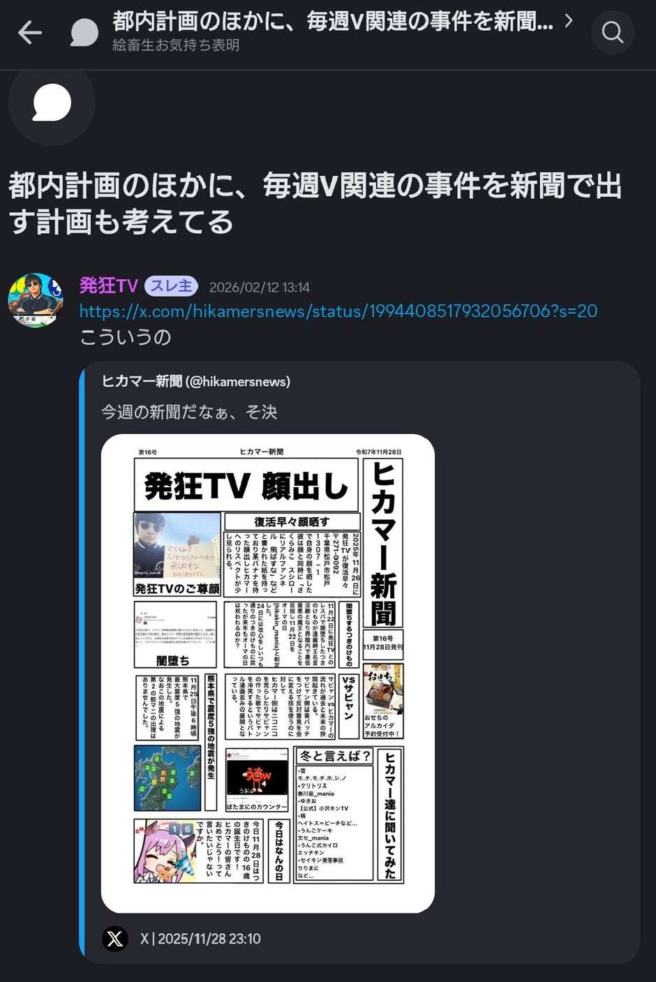 | … | 69無念Nameとしあき26/02/28(土)10:33:35No.1390537644そうだねx7 1772242415726.jpg-(80420 B) ほんとだったらヤバいし嘘なら自分の嘘で盛り上がってるとかヤバいねこの人達って話に戻すか |