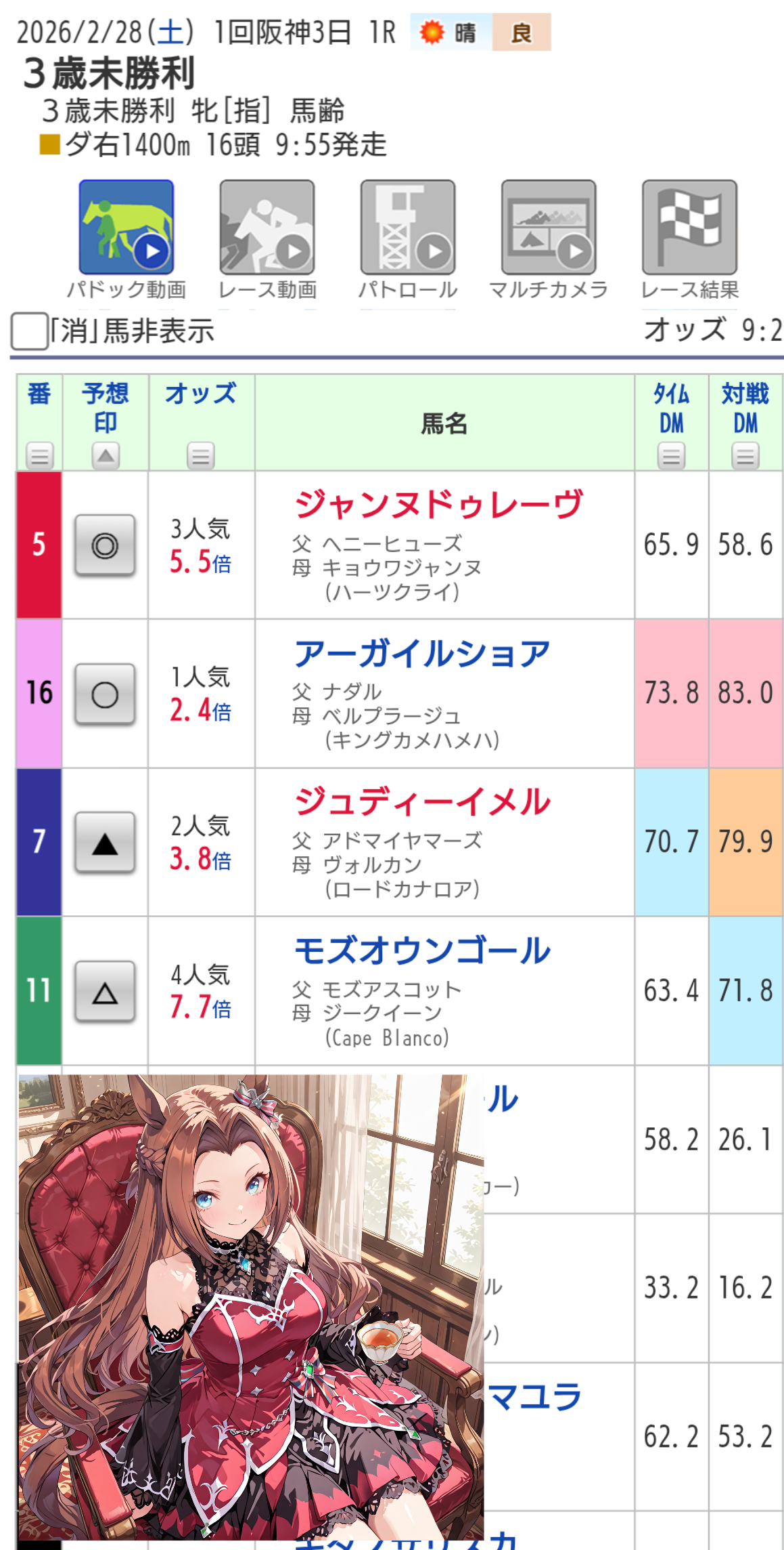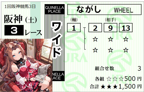 | … | 90無念Nameとしあき26/02/28(土)10:45:06 ID:JvOwJYXMNo.1390539587そうだねx1 1772243106806.png-(168662 B) 阪神03rは01番アリハムさんの単複(複勝厚め)とお相手に02,09,13番ですわ!! |