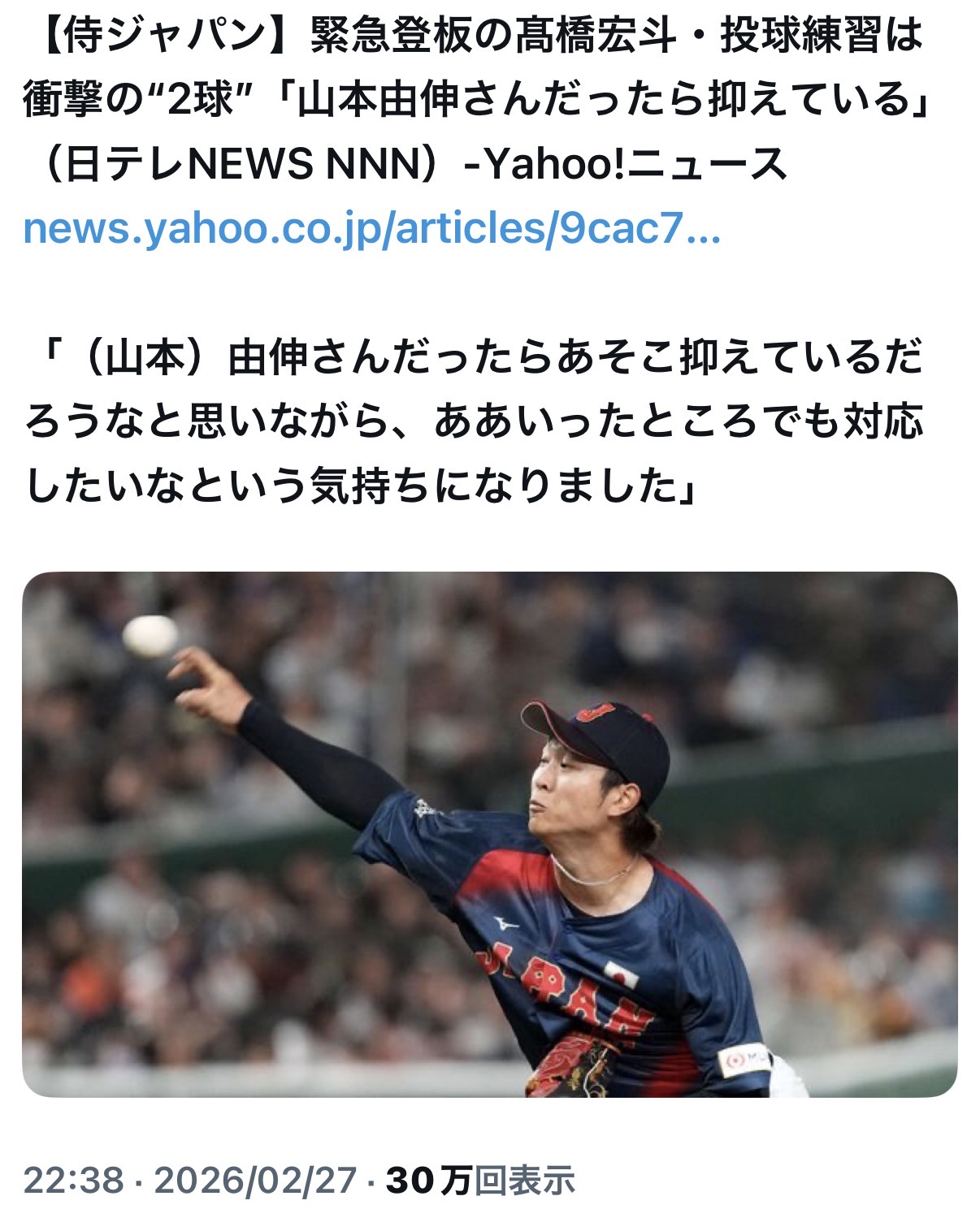 | … | 127無念Nameとしあき26/02/28(土)11:16:01 ID:j1PU8f4ENo.1390544871+>ヤマモロ「投球練習なんて2球で充分だ」 |