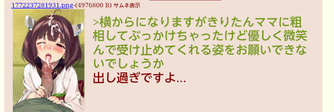| … | 20無念Nameとしあき26/02/28(土)09:54:50No.1390530915+ 1772240090285.png-(108845 B) きりたんママぶっかけシチュありがとうございます! |
