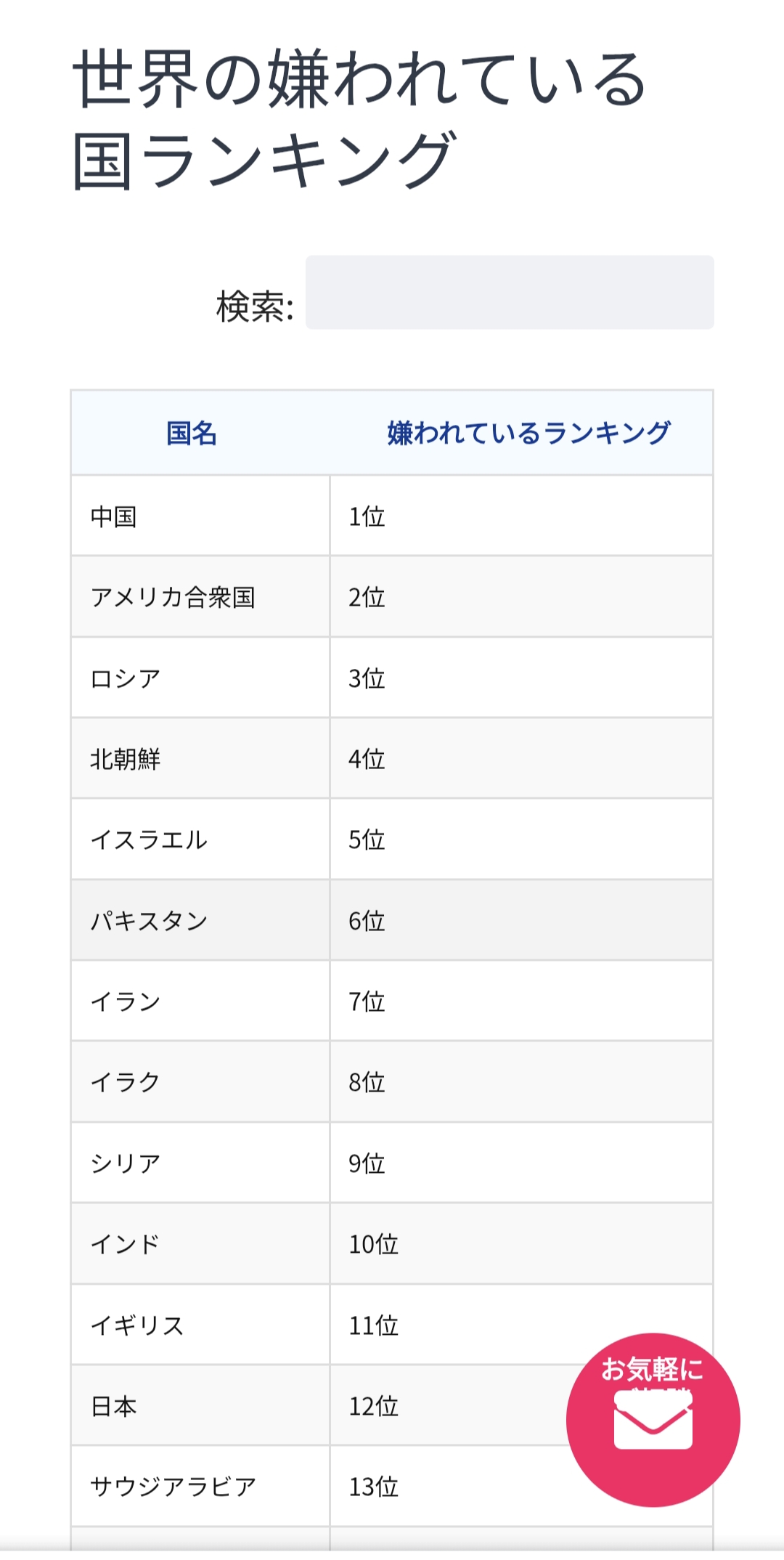 | … | 67無念Nameとしあき26/02/28(土)18:51:31No.1390639704+🧨 今回の「嫌われている国ランキング」はどの層の記事か? |