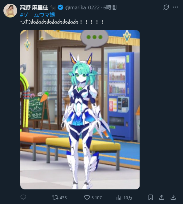 | … | 868無念Nameとしあき26/02/28(土)20:45:15No.1390673240+アメリカで今のシナリオが実装される頃にはアメリカウマ娘が追加されてシナリオに追加される可能性とかあるかな…? |