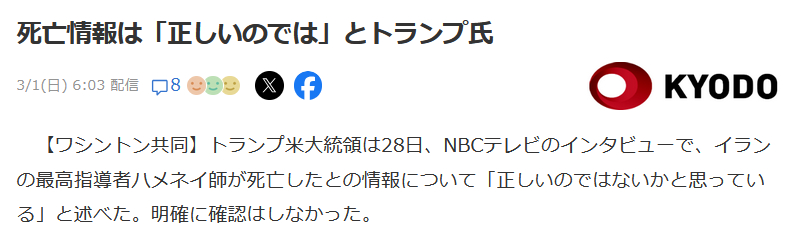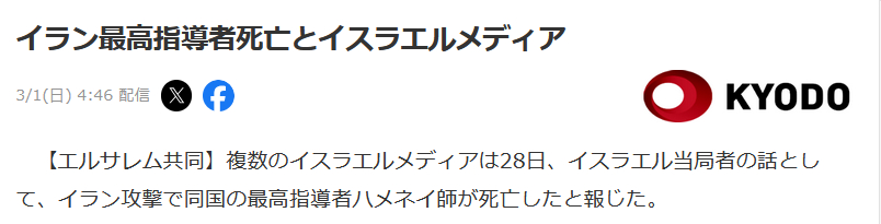 | … | 95無念Nameとしあき26/03/01(日)04:44:19No.1390758987+イスラエルメディアが次々ハメネイ死亡報道出してるな |