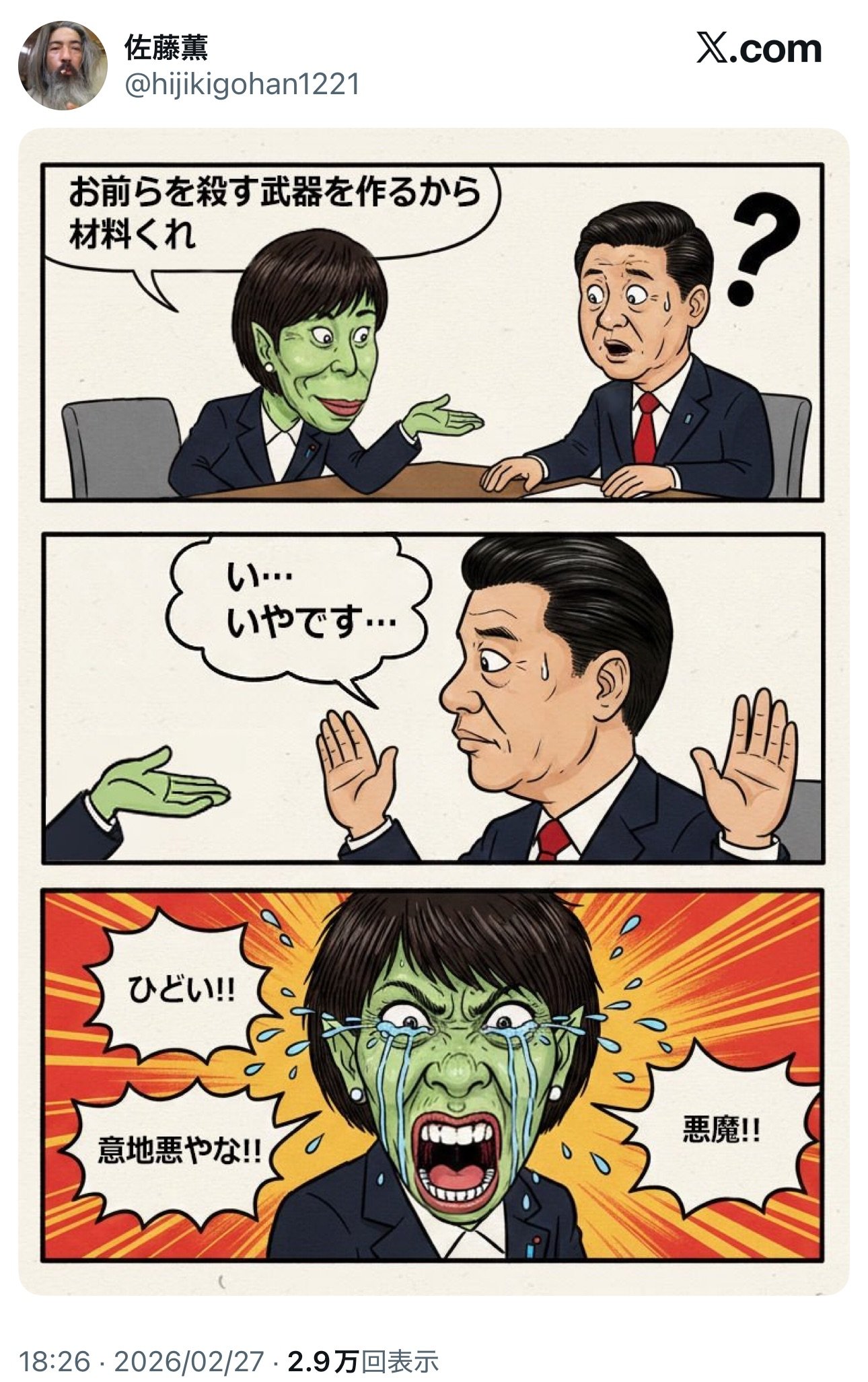 | … | 10無念Nameとしあき26/03/01(日)13:31:01No.1390842041そうだねx7ウィットも無いのに風刺の真似事なんて恥ずかしい |