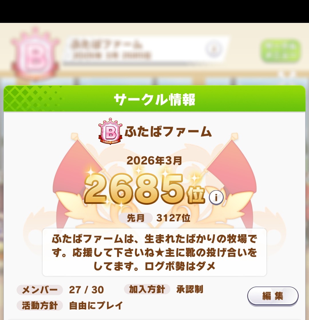 | … | 31無念Nameとしあき26/03/01(日)16:37:16 ID:.5ZWK.ssNo.1390882586そうだねx1チムレ結構入れ替えたからチャンミに向けて因子周回ですわ |