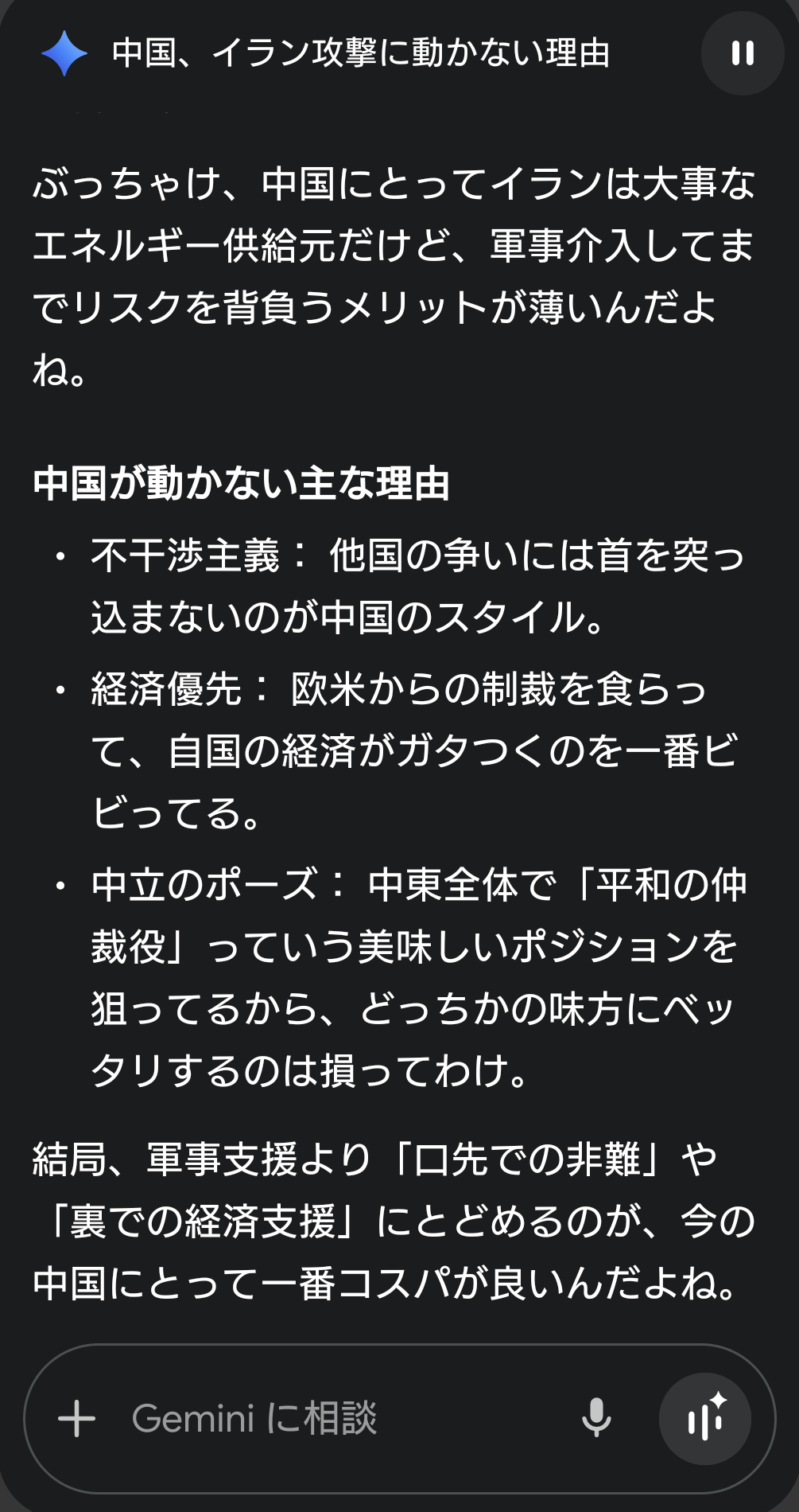 どうしてお友達のイランを助けなかったんですか?削除された記事が1件あります.見る