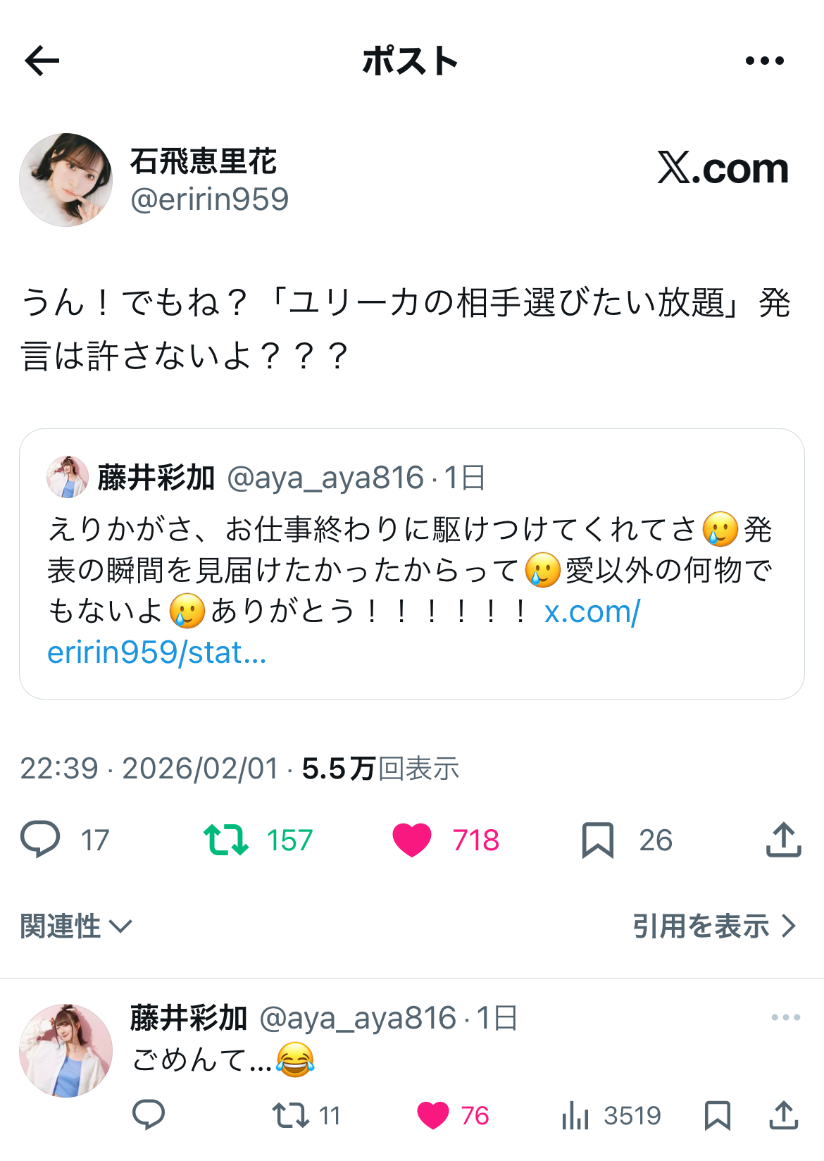 | … | 33無念Nameとしあき26/03/01(日)20:47:49No.1390948582そうだねx2 1772365669623.jpg-(31596 B) >第一回「一葉のお嫁さんに相応しいのは誰?!」 |