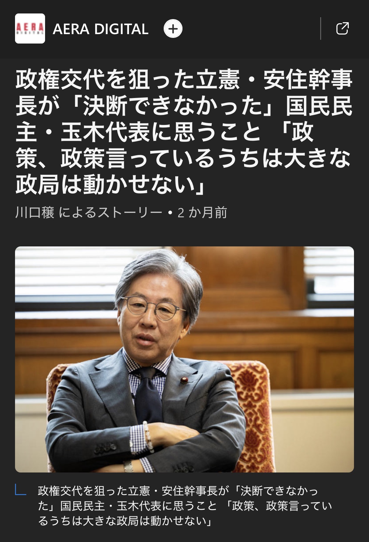 中道落選の安住氏削除された記事が1件あります.見る