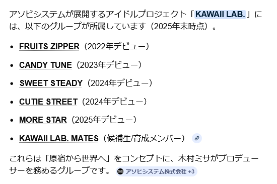 | … | 15無念Nameとしあき26/03/02(月)13:42:35No.1391087130+新しい学校のリーダーズの事務所の後輩だけどFRUITS ZIPPERの方が平均年齢が高いのな |