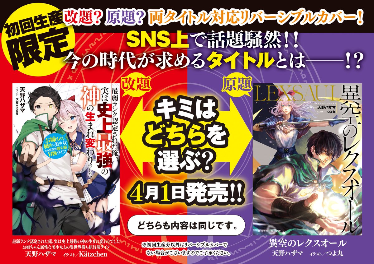 | … | 23無念Nameとしあき26/03/02(月)13:34:15No.1391085892+長文タイトルは悪いと言わないが長文タイトルで表紙デザインさせられるのは辛いな |