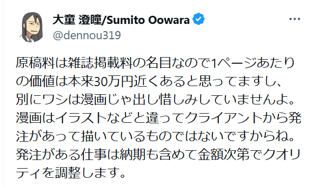 | … | 90無念Nameとしあき26/03/02(月)15:28:32No.1391102321+>原稿料は1ページあたりの価値は本来30万円近くある? |