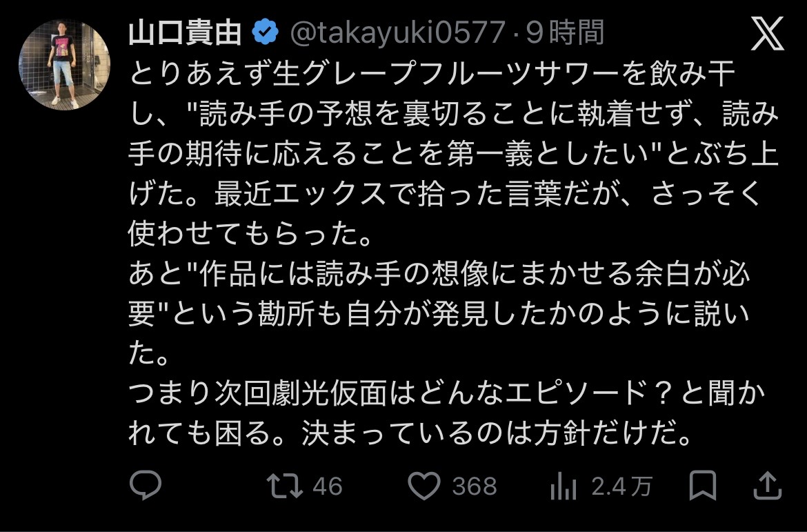 | … | 50無念Nameとしあき26/03/02(月)14:34:06No.1391094394+「ここでこいつを出すかぁ!」「そう来たかぁ!」「そんな展開にして大丈夫か!?」といういい意味の裏切りは必要 |