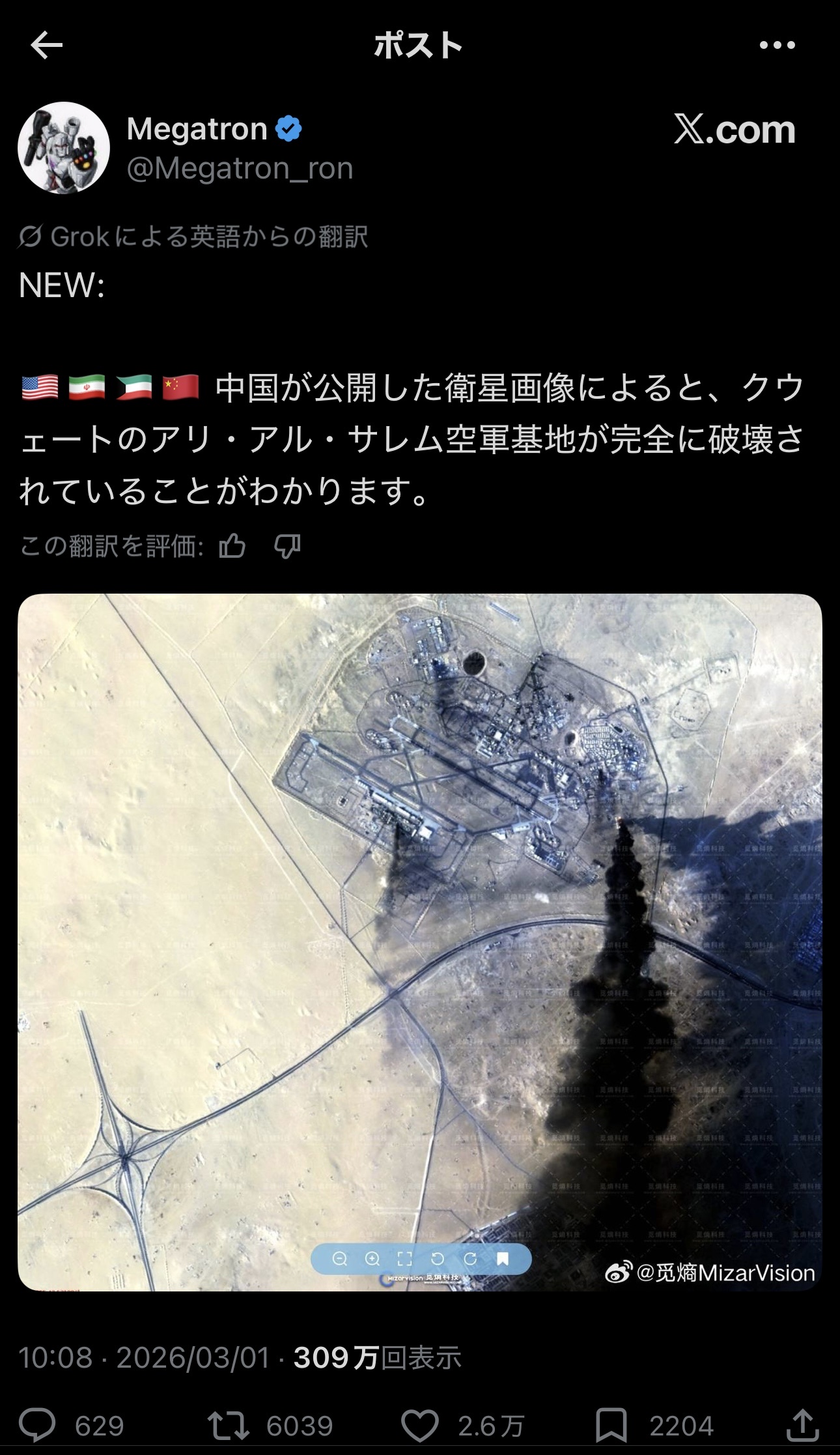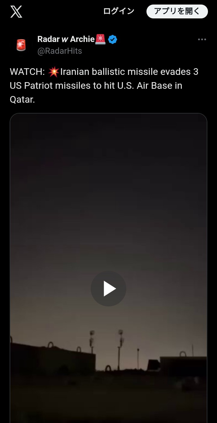 | … | 10無念Nameとしあき26/03/02(月)19:46:01No.1391153614そうだねx19クウェートやカタール上空で食らったんだから同士討ち以外ありえないんよな |