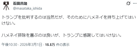 | … | 126無念Nameとしあき26/03/02(月)21:16:17No.1391182850そうだねx1 1772453777237.jpg-(27092 B) トランプはすきだがさすがにこういう手段は認められないし正当化して援護してはいけないと思う |