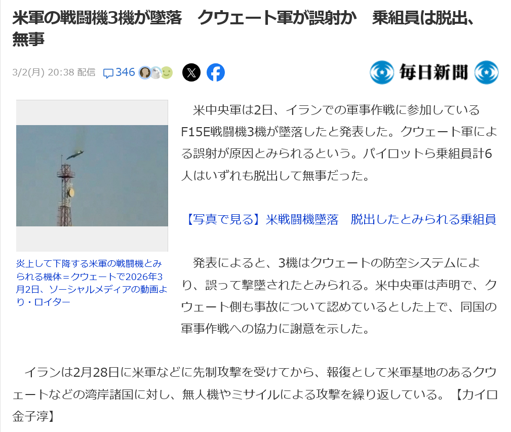 | … | 14無念Nameとしあき26/03/02(月)19:47:03No.1391153960+>クウェートやカタール上空で食らったんだから同士討ち以外ありえないんよな |