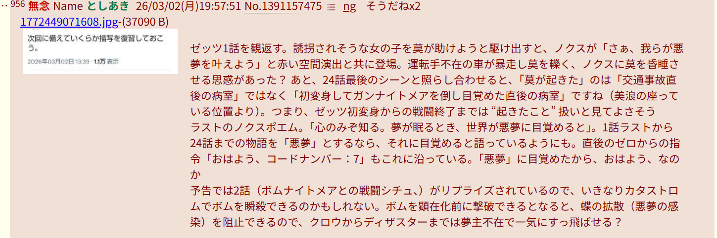 | … | 78無念Nameとしあき26/03/02(月)20:18:09No.1391163954+ぶっちゃけノクス小鷹について話せないってもうそれゼッツ見てないよねレベルだから |
