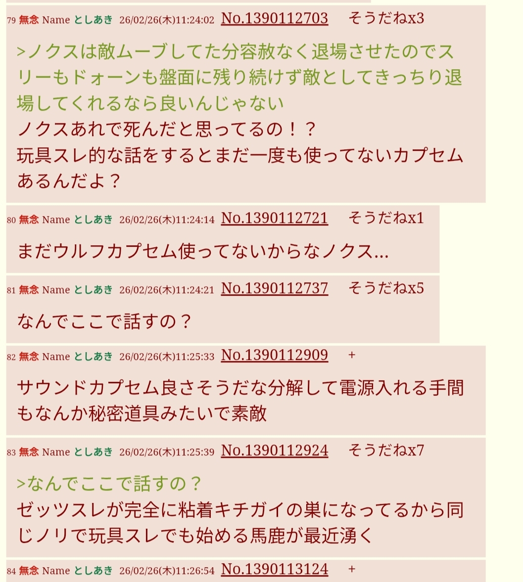 | … | 54無念Nameとしあき26/03/02(月)20:14:52No.1391162901+>あんまりノクスのポエム話題にするとバンダイがポエムしか収録してないボイス入りアイテム出すからやめろ |