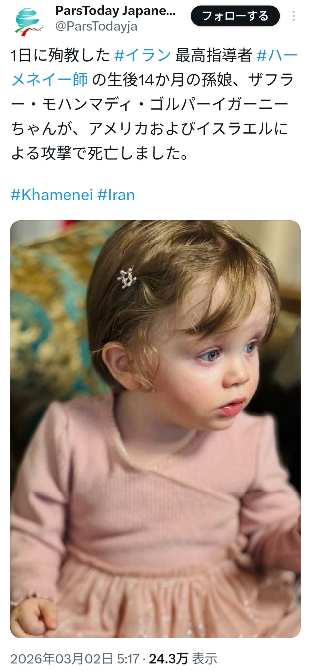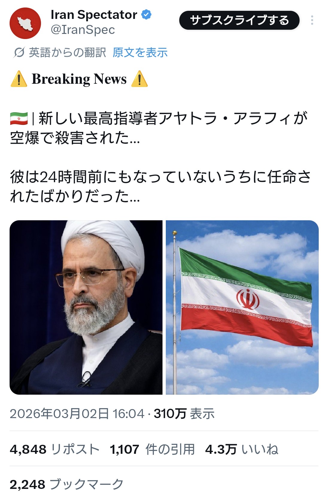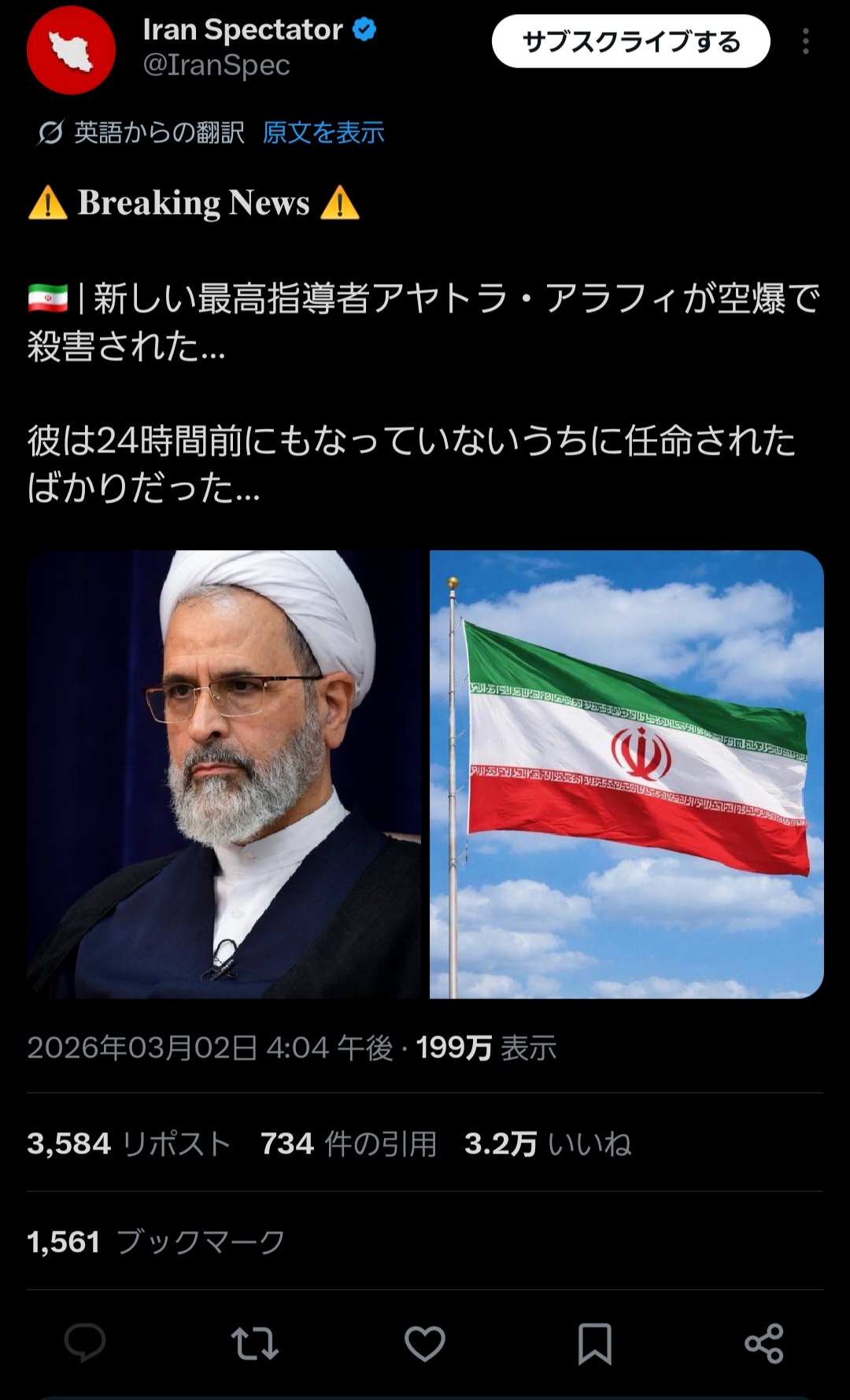 | … | 72無念Nameとしあき26/03/02(月)20:30:32No.1391168026+ハメネイの次のトップが暗殺されたなんて話まで出てきたが流石にガセだよな? |